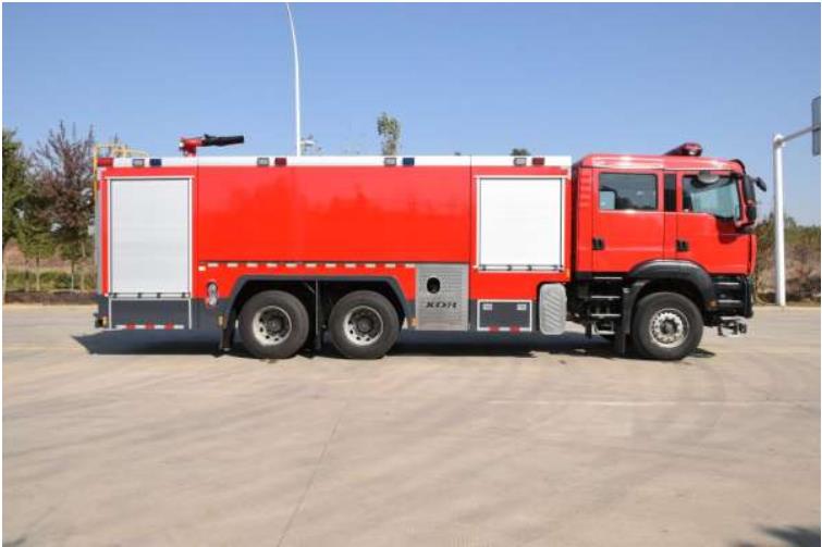 国六重汽豪沃后双桥16吨泡沫消防车采用重汽TX7系原装底盘ZZ5357TXFV464MF5二类底盘改装而成。驾驶室为原装TX-S驾驶室,主气囊+副机械型座椅,乘员室前部与驾驶室连通,原装双排四开门,可乘坐2+4人,该车为外露罐结构,车身前部为器材箱,中部为罐体,后部为泵房。载液罐体为优质碳钢,与底盘采用弹性连接,载水13000kg(PM160),泡沫液量3000kg(PM160),装备了上海雄真消防设备有限公司生产CB20.10/30.60型中低压消防泵,额定流量60L/S,车顶安装成都威斯特消防机械有限公司生产的PL48(PM160)型车用消防炮。该车zui大的特点是载液量大、操控性好、维修简便。可广泛应用于公安消防队、厂矿企业及社区、码头等场所,扑救大型油类火灾或一般物质火灾。
